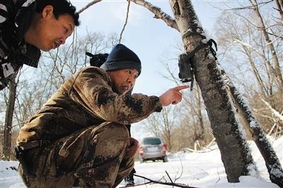 3月3日早上7点,郎建民踩着30厘米厚的积雪,钻进了树林里。