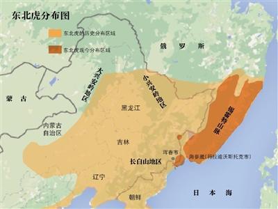 而在100多年前,东北虎广泛分布于中国东北温带针阔混交林的大部分地区和俄罗斯远东。
