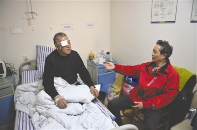 昨日上午,59岁的面馆老板鲁浩提着两箱牛奶,来到医院,看望原本素不相识的成都“献血大王”熊德金。熊德金在前一天做了角膜移植手术,鲁浩来看看他恢复得怎么样。