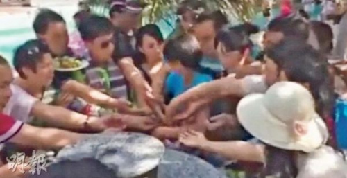 这段据说是内地游客团在越南一家餐厅拍摄的短片,长约20多秒,只见一名女服务员捧着一大碟荔枝,准备逐一派给在场的游客,谁知一走过来已被众人包围,个个都伸手拿碟中荔枝。有的男游客也不知是否故意,从女侍应背后伸出手,触碰其胸部。女侍应见挡都挡不住,没有办法,干脆将碟子放上桌,任众人自取,结果不到7秒时间,碟中荔枝被一扫而空。