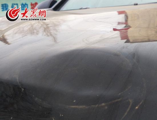 肇事车辆引擎盖在撞击后留下了一个明显的凹陷坑