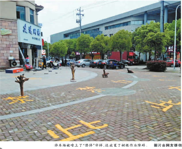 “大碶地铁站南侧、派舍提香小区东北角是一个公共停车区域,但是最近被人用油漆写上了很多‘禁止停车’等字样,还放置了树根、木桶等障碍物,这些大妈们为跳广场舞真是拼了。大妈们有地方跳舞了,我们的车该停到哪儿呢。”近日,网友“一米阳光”通过微博吐槽,引来了不少人的围观。