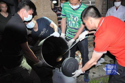 今日上午,法晚记者从广西柳州市公安局官方微博获悉,柳州警方从破获的一起小案中抽丝剥茧,经艰苦侦查,数月不懈追踪,最终挖出了这一制毒犯罪团伙。2016年4月22日,警方决定收网,一举抓获了该犯罪团伙的全部6名团伙成员,端掉两个制造毒品的窝点,缴获毒品K粉212.1公斤,制毒原料75公斤。