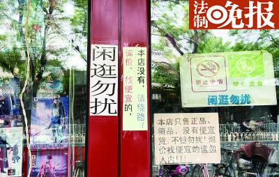 南锣附近的一家游戏店的门口贴着“闲逛勿扰”的标识