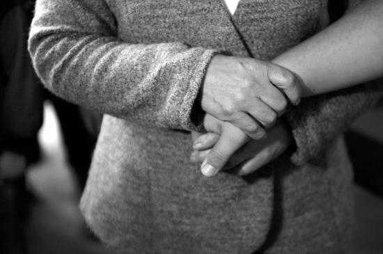 4月24日,邵阳隆回县,接到袁丹后,邹其秀双手紧紧握着他的手。图/记者辜鹏博