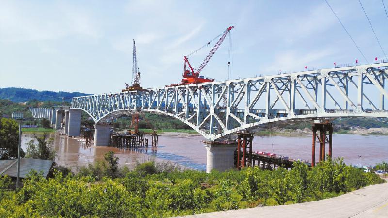 华西都市报记者同时从成贵铁路多个建设单位了解到,世界最大跨度的公铁两用钢箱拱桥——成贵铁路金沙江公铁两用桥2号主墩上横梁,经过中铁大桥局建设者连续24小时左右的奋战,4月17日当天,2号主墩顺利实现了封顶。
