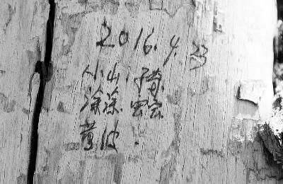 ▲枯死的树上还留有游客写的字