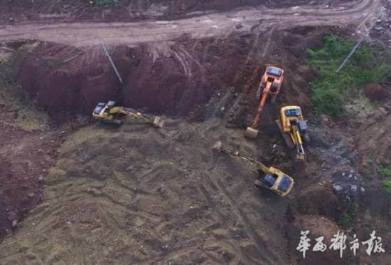 5月2日中午,天府新区成都直管区兴隆街道一个建筑工地旁,一群穿着制服的人正低头忙碌地操作着设备。