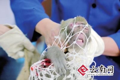 “初步体检小黄的体况良好,伤口也没有化脓,用药后会尽快愈合。”动管科黄科长说,小黄会单独饲养观察,一切良好后再与同批猴子合笼饲养。