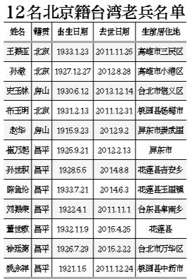近日,北京青年报记者从一家名为台湾松成企业的殡葬公司获悉,有12名籍贯为北京的台湾老兵去世后,留下了部分遗产。根据台湾的相关规定,这些老兵在大陆的直系亲属可以领回老兵的骨灰,也可以继承这些老兵的遗产。这些老兵的遗产继承期很多即将截止,但到现在依然找不到他们的亲属。