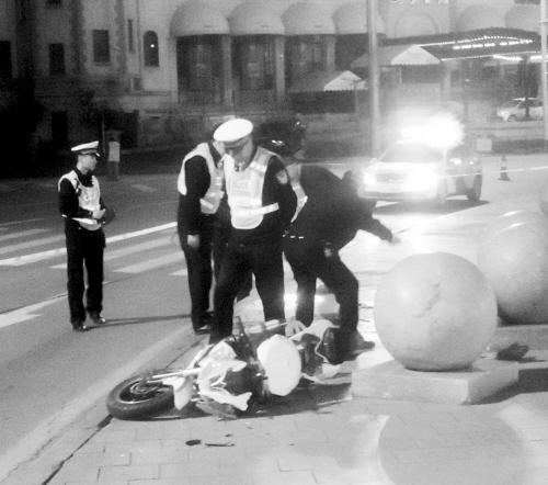 “咣”地一声巨响,划破了黎明前的寂静。俩小伙共乘一辆摩托车自南向北疾驶,冲到中山广场南侧并撞上了隔离用的大石球,导致一人当场死亡、一人重伤。