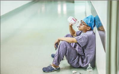 这几天,一张照片在朋友圈刷屏:安徽医科大学第二附属医院医生陈磊累得瘫坐在地,正拿着一瓶葡萄糖往口中猛灌。这张照片被网上热转,网友纷纷向辛苦工作的医务工作者们致敬。