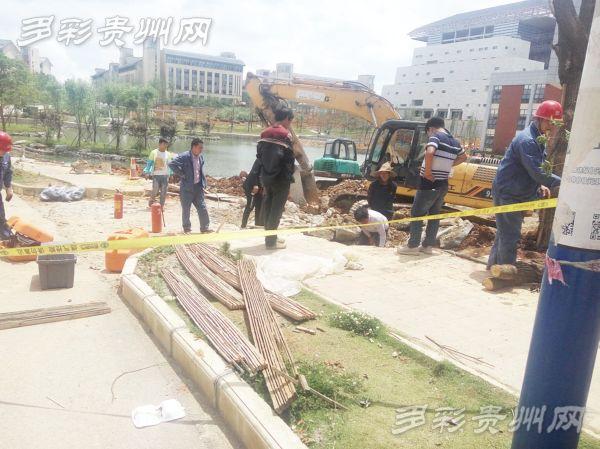“挖机施工的时候挖断了燃气管道,接到电话我们很快就赶到了现场,学校也拉起了警戒线,没有造成人员伤亡。”现场抢修的一位负责人告诉记者,泄漏发生在早上10点。
