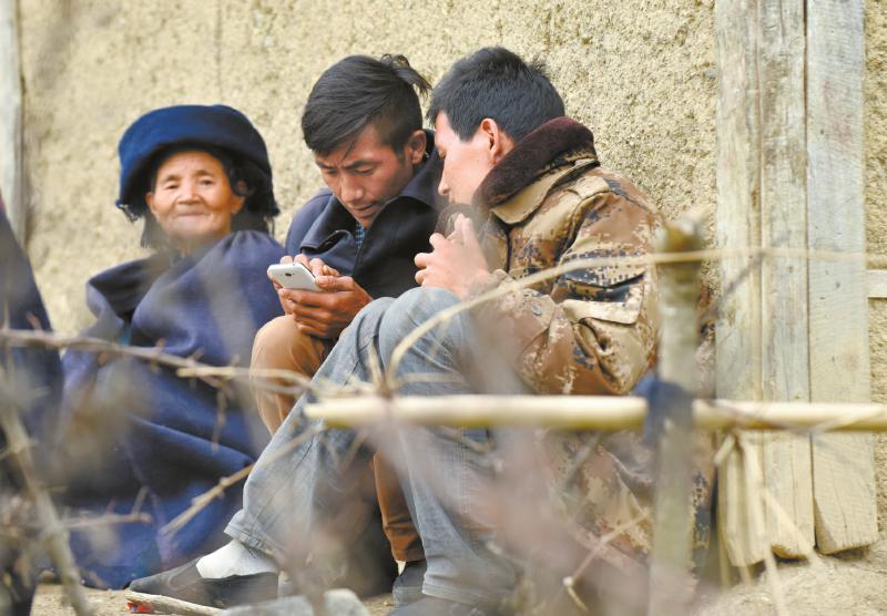 “悬崖村”村民能够通过智能手机与外界保持联系。