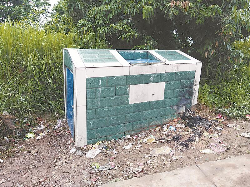 山顶上村新建的垃圾柜周围散落着生活垃圾,还有焚烧痕迹。