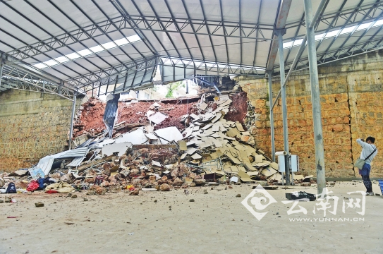 云南小哨山体滑坡宿舍垮塌 泥土冲进隔壁仓库(图)