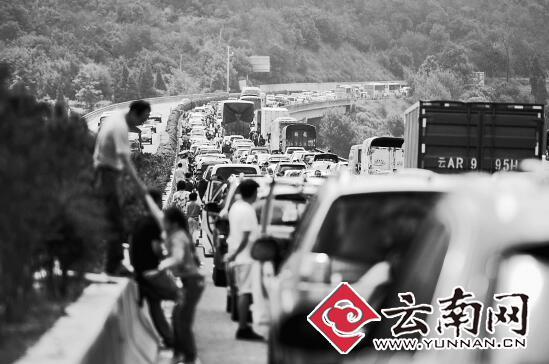昨日上午,昆石高速石林方向拥堵不堪