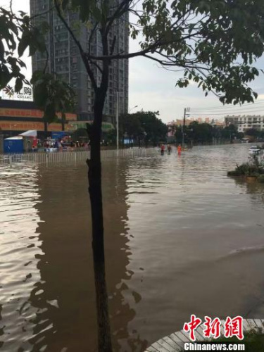 图为强降雨导致昆明部分路段积水严重。 网友提供 摄