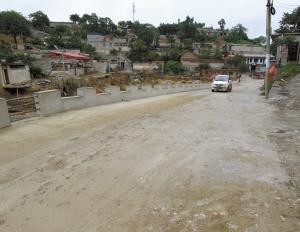 昨日上午,当我们赶到现场时,再一次被现场的景象惊呆了。原本破开的河谷上,架起了一座水泥浇筑的道路。这条路长近百米,最宽的地方7米有余,双向会车绝无问题。随着这条新路的修通,通往重灾区贵泉村、台头村等地的交通将得到一定缓解。如果现在去井陉县南峪镇,可通过走307副线,在铁路桥与公路交会处的桥洞下通过,便可直通台头村,到达重灾区南峪镇的每一个村落。