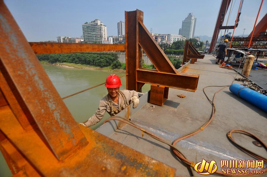 曾明东说:“感觉宜宾环境非常的不错,最近几天炎热程度与‘火炉’重庆也不相上下。天气虽然炎热,想到宜宾人民盼望着南门大桥早日恢复交通的需求,我们辛苦这几天也不算什么,只要南门大桥按时、保质、保量完工,就可以早点回家看望父母了。”
