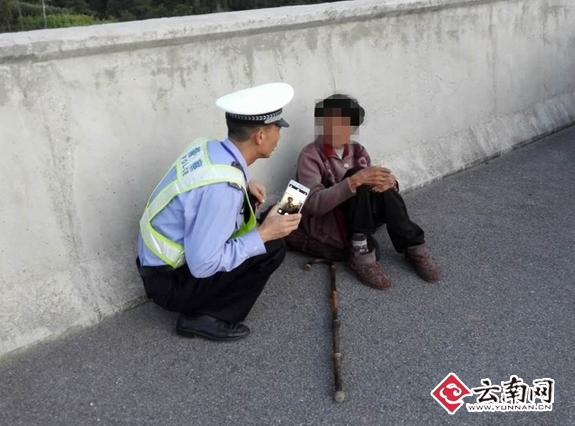 八九十岁老太负气离家误上高速被困 幸遇交警(图)