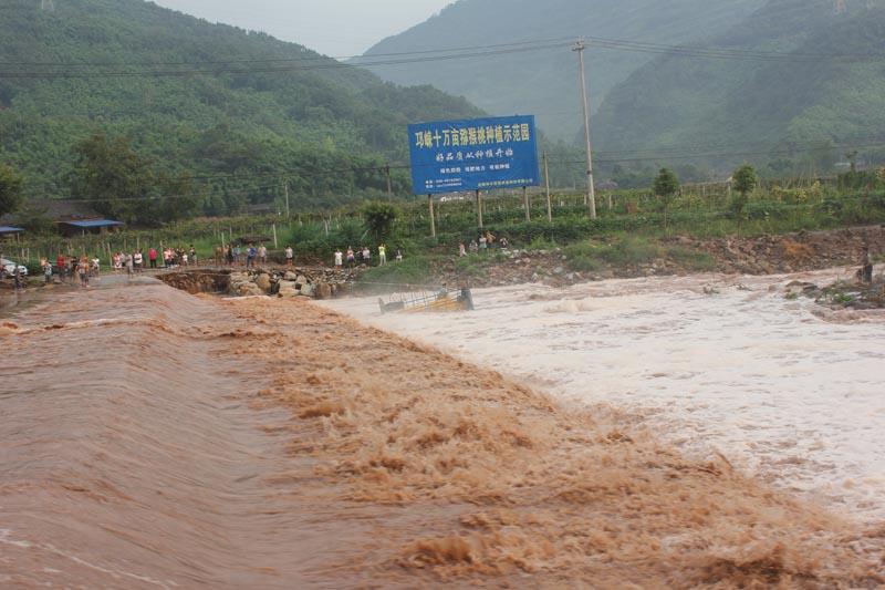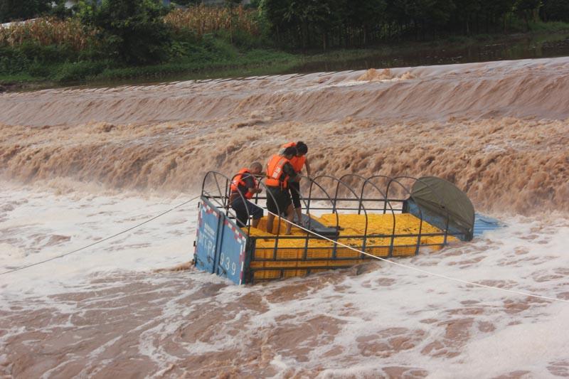 四川邛崃河水暴涨货车被困 消防救援(组图)