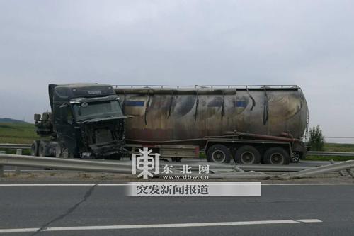 哈尔滨大型罐车与中巴相撞 多人被甩出受伤(图)