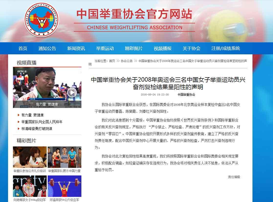 中国举重协会就兴奋剂事件发表声明 如若属实将严惩