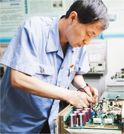 老韩遇见个电路板,就像发现新大陆一样,两眼直放光,总要把密布各种元件的电路板拿在手里,翻来覆去观察,爱不释手。遇上不懂的型号他就记下来,上网查清楚,他说:“技术一直在变化,学得更多,才能干得更快。”为了干好检修,韩喜青每个礼拜都去泡书店。