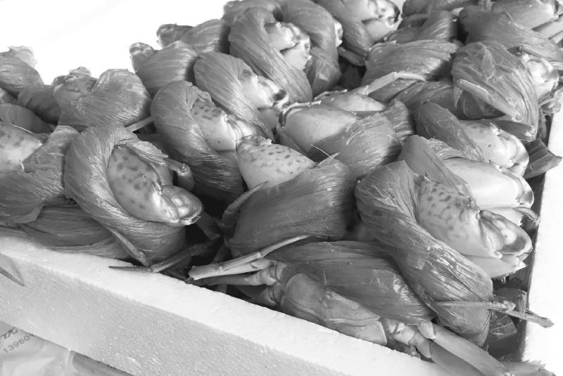 成都青石桥海鲜市场售卖的螃蟹。