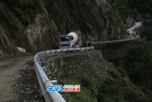 为了在保证质量的前提下,尽力加快进度,确保在冰雪季来临前完成施工,山背后村通村硬化路施工单位——雅江县林业工程处施工负责人姚云称,现在,在逼仄的山路上,有5辆水泥罐车轮流拉商品混凝土上山,14名工人负责筑路,6名来自贫困家庭的农民负责养护。“正常情况下,10月15日完工没有问题。”姚云说。