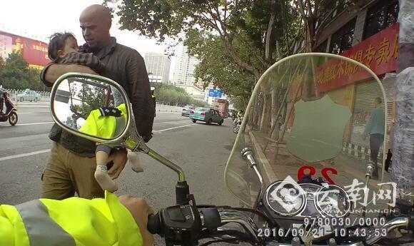 见此情况,民警当即启动警务摩托车,载上外籍男子和其受伤的孩子朝云南省儿童医院赶去,争取宝贵的抢救时间。10时47分,孩子被安全送达医院救治,为孩子获得及时救治赢得了宝贵时间。