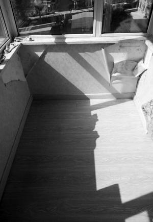 摄影 石天蛟 阳台发霉壁纸脱落。