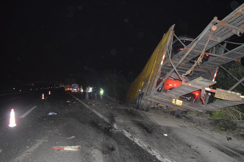 3车追尾致1死2伤 拖挂车内多辆保时捷受损(图)