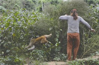 猕猴从村民焦定琼身边飞跃过去
