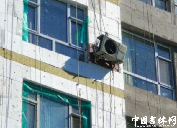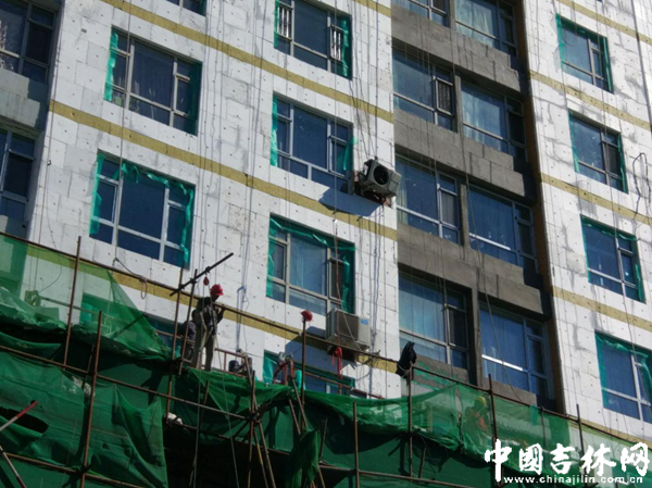 10时许,中国吉林网记者赶到大马路与三道街交会路口,找到网友反映的小区。此时,这里的保温工作仍没有完工,工人们正在高空工作,在楼下可以看到,有些空调箱已经出现弯曲。