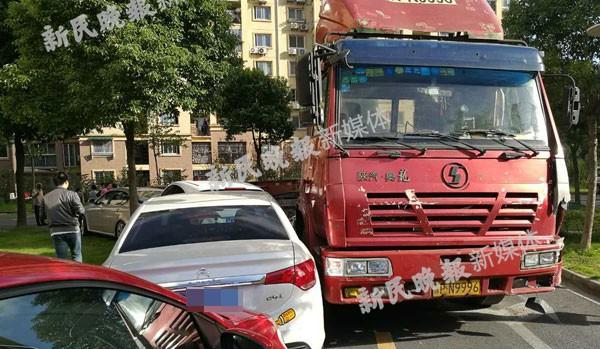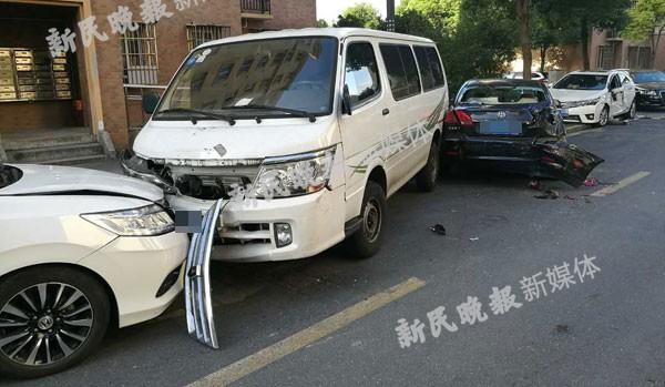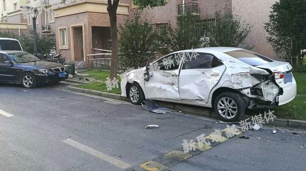 上海一男子凌晨酒驾集卡冲入一小区撞损17车(图)