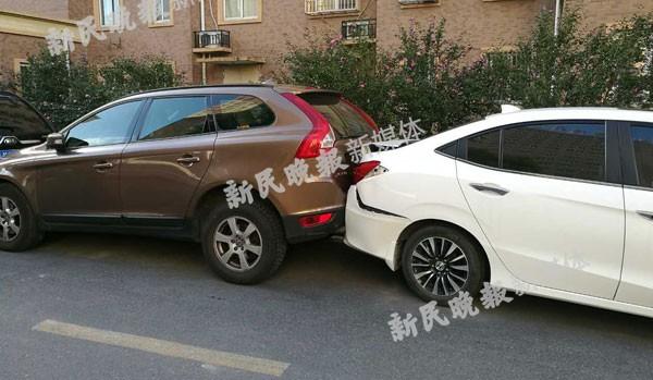 图说:昨夜一醉驾者驾车在浦东南新东园小区内接连撞上17辆车,被撞车辆“伤势”颇重。新民晚报新民网见习记者 俞金旻 摄