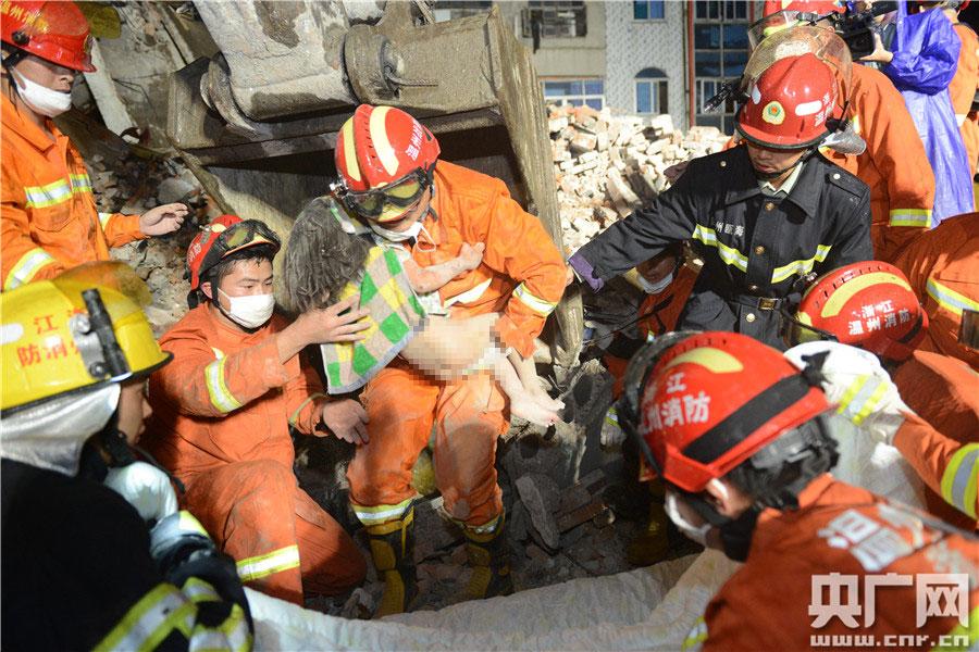 温州民房倒塌现场救出一6岁女孩 生命体征稳定(组图)