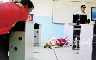 彭斌上课时,胖虎通常会安静地在旁边等候。