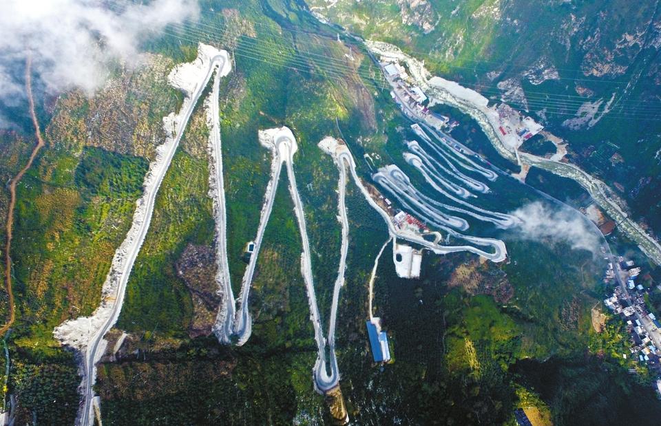 原标题:航拍雅康高速施工现场 康定大杠山再现“二十四道拐”