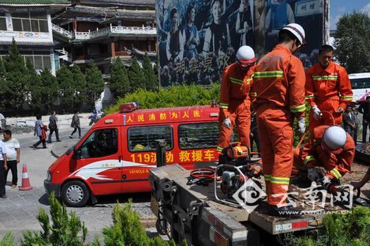 当天11时44分,大理市消防大队古城中队接到指挥中心调度后,立即前往救援。