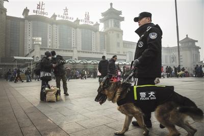 据铁路警方介绍,从元旦开始,北京各大火车站内警犬都开始投入工作,并直至春运、两会结束。