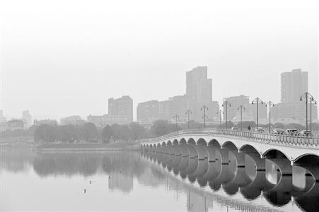 昨天户外空气质量不佳,远处景物看上去灰蒙蒙的。 金陵晚报记者 刘鹏 摄