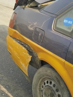 ■被撞坏的出租车。