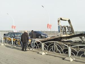 ■桥边散落着被撞掉的隔离栏杆。