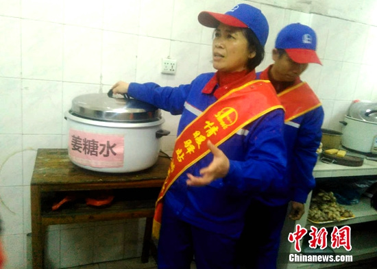 朴实的话语表达出了以李金兰为代表的这些志愿者的心声,在梧州都连站还有一个叫的很响的名字叫“姜糖哥”。春运期间,加油站每天需要大量的姜糖水,为此“姜糖哥”早晨很早就要起床做准备,洗好生姜,再切片加糖来煮,厨房里几个大大的电饭锅里煮着满满的姜糖水。
