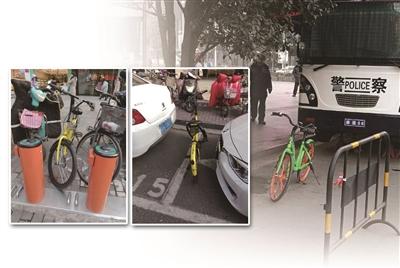 “共享单车”在新街口违停问题最突出有的甚至占了公共自行车桩