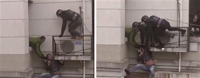 嫌犯死死抱住空调外机,警方上下配合拖拉