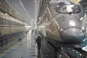 清晨,保养一新的动车组奔向火车站,投入春运。